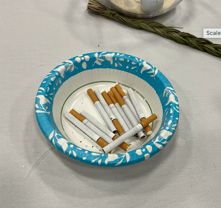 Hence the pic of the cigarettes; a bowl laid upon each table at the memorial. It is the only picture I took; cell phone use is not tolerated during ceremony, nor should it be. Tobacco, čhaŋdí, is one of the sacred medicines. Therefore, it was made available for the people.