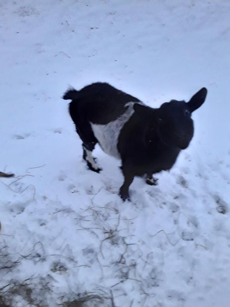 Yeah, OK, the pic is a little blurry but you get the idea. Best I could do with the goats at feeding time this frigid morning, the animals are a study of frantic motion. It always gives me a laugh to see how the goats fight it out over some hay and sweet feed; this. This is why I keep them. They make me smile.