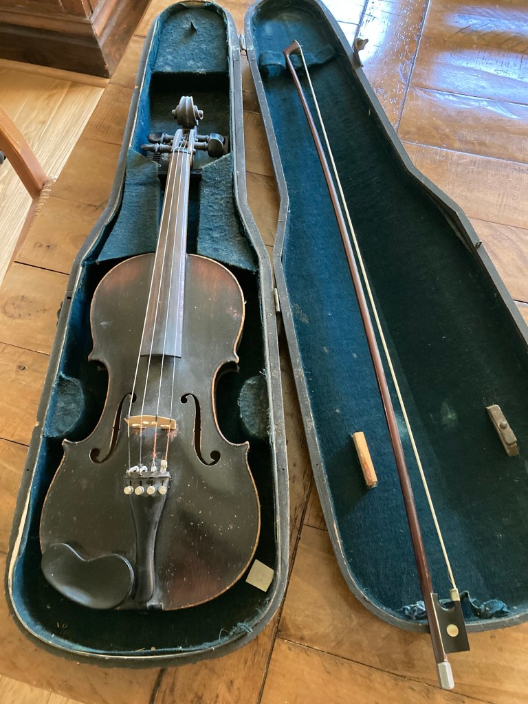 But obviously, I still have Grandma’s fiddle. I hadn’t played it in I don’t know, fifteen or so years. My daughter expressed an interest in playing, so it got me thinking about my couple of violins.