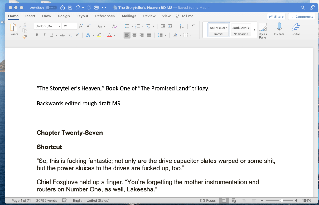 But it needs to be done. This is why I give myself hard deadlines, and I strive to stick to them. Onerous tasks are frequently the most necessary, and by close of business tomorrow I owe my editing team the RD MS of “Storyteller’s Heaven.”