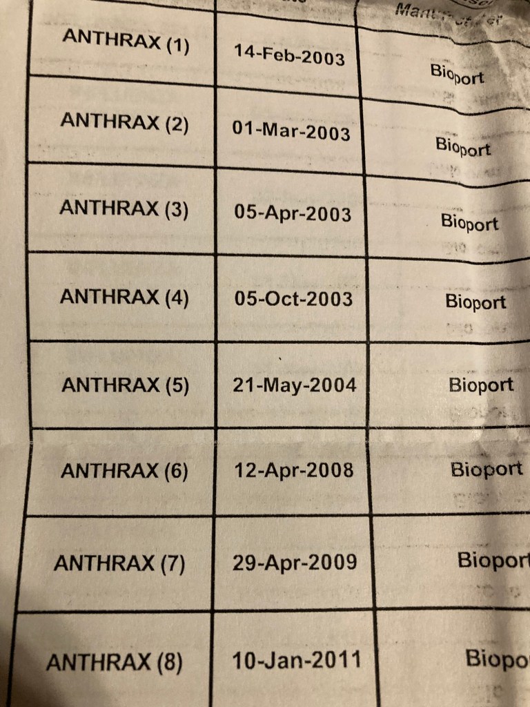 You may have noticed my shot record above, listing no fewer than eight Anthrax vaccinations. People may not remember, but these vaccinations were deeply unpopular when issued, and they were also experimental in nature with a proven deadly biological warfare agent. Very bad stuff.