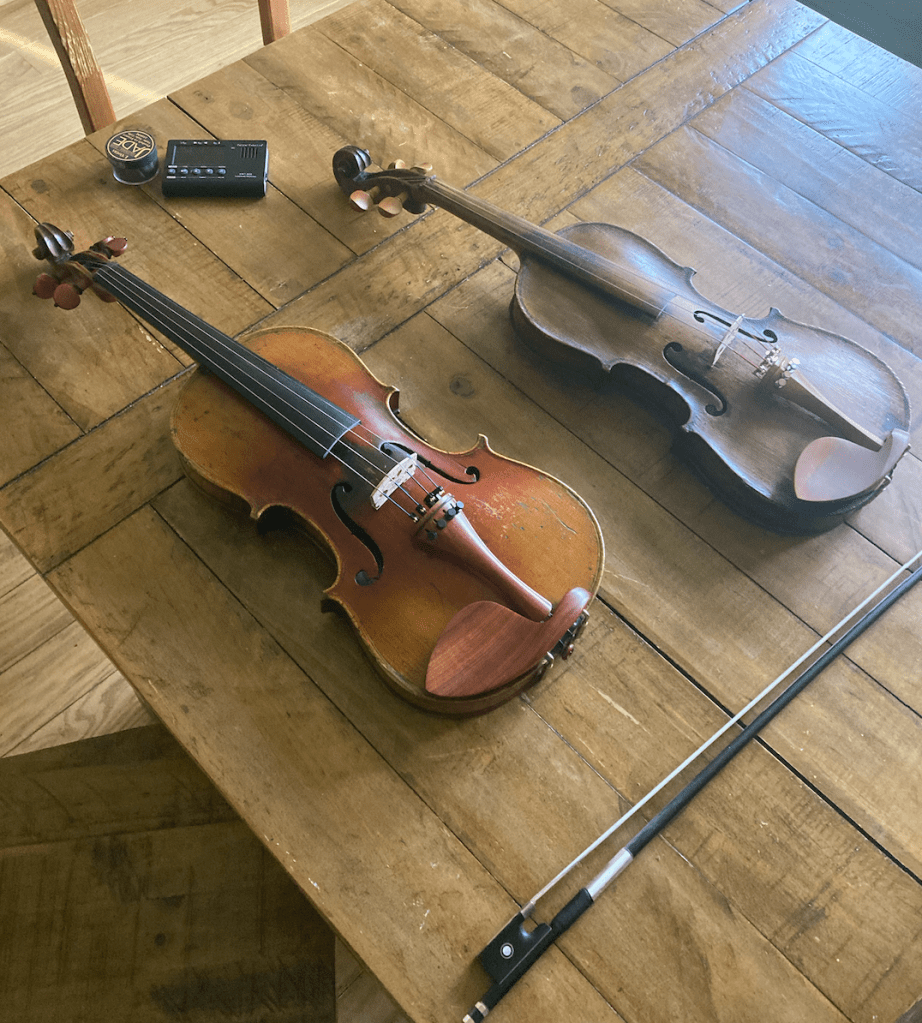 Holding these old girls in your hands, admiring the craftsmanship and obvious wear from their past lives. Smelling the wood, rosin and polish. Rubbing them down with a soft cloth and a thin layer of fragrant varnish restorer. Bringing out the shine. Tuning them and then giving them the first strokes of the bow.