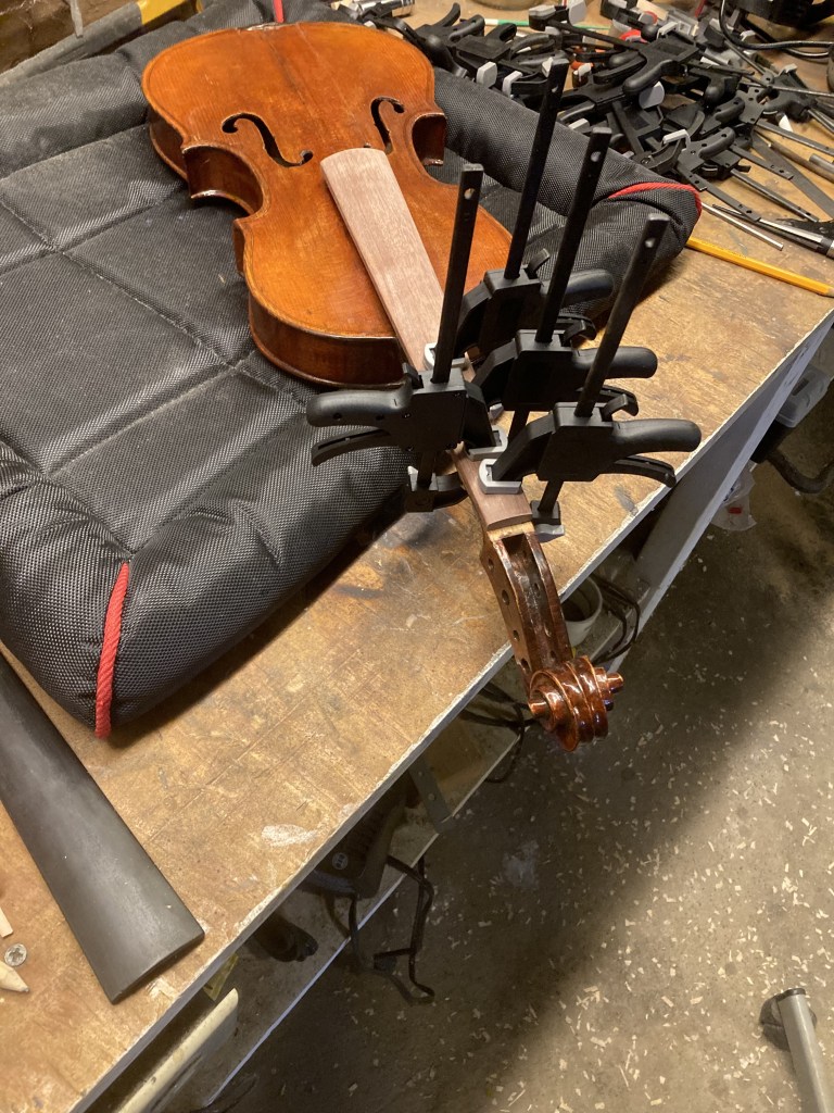 At long last, the red violin was ready to play and in its final configuration. See below.