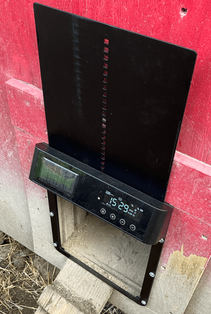 I installed the door, it was straightforward. Charge it up, install six screws, then walk away. For three days, it was OK. On the morning of the fourth day, I went outside late, and the chickens were still cooped up. What the hell, I thought. I hit the manual “up” button, and the problem was solved. That night, the door went down. All good. The very next morning, same deal. So, I changed the morning setting to the timer function.